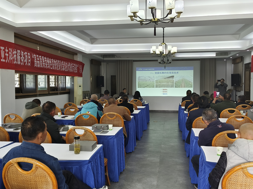 本次培训会聚焦高品质果菜绿色高效轻简化种植核心需求与质量安全痛点,邀请我院蔬菜所西甜瓜创新团队首席专家徐锦华研究员、金陵科技学院王明海副教授担任主讲嘉宾。徐锦华研究员以 “西甜瓜集约化育苗及高效栽培技术” 为主题,从集约化育苗关键流程、绿色高效栽培模式优化、病虫害绿色综合防治策略三个维度,结合多年科研实践与田间案例,深入浅出地讲解了优质西甜瓜轻简化栽培的核心技术要点,为种植户提供了可直接落地的操作指南;王明海副教授则围绕 “农产品质量与安全” 展开分享,系统阐述了农产品质量安全现状、影响农产品质量的主要因素、农产品质量安全的保障措施等,同时针对生产环节中的农药使用、产地环境管控、标准化生产流程等关键问题,给出了具体可行的改进建议。