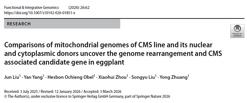 茄子是世界重要的蔬菜作物之一,几乎所有的商业品种都是杂交种。然而,目前杂交种子生产主要依赖人工去雄授粉,不仅劳动强度大,成本高,还难以保证种子纯度。茄子CMS主要通过栽培茄与野生茄种间杂交创制,但育性恢复的遗传基础尚未明确。