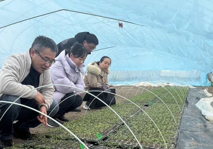 如今正值春季番茄育苗定植关键时期,而南京近期连续阴雨天气不利于番茄幼苗的生长,光照不足会导致幼苗徒长,湿度过大易引发猝倒病、立枯病等苗期病害,从而降低幼苗抗性,不利于幼苗定植后缓苗和稳健生长。团队深入田间育苗棚,细致查看番茄幼苗长势、根系发育情况及棚内温湿度调控设施运行状态,提出要科学调整棚内通风频次,避免棚内湿度过高滋生病菌;在白天去除内层覆盖,增加光照,根据情况适时增加补光灯。团队结合番茄幼苗生长与南京春季气候特点,优化了配套定植方案和水肥管理措施,确保番茄幼苗定植后快速缓苗,在阴雨天气结束后迅速进入旺盛生长期,为春季番茄顺利生产提供了强有力的技术支撑。