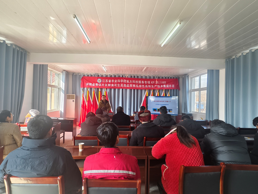 为深入推动西瓜产业提档升级,扎实推进亚夫科技服务项目落地见效,切实提升种植户科学种植技术水平,助力潼阳镇西瓜产业高质量发展,1月27日,沭阳潼阳工作站组织科技服务专家团队,围绕“沭阳县帮促片区鲜食花生及高品质西瓜绿色高效生产技术集成示范”项目中西瓜生产的核心关键环节,开展西瓜集约化育苗技术专题培训。省委驻沭阳乡村振兴工作队相关成员、沭阳县农业技术推广中心技术骨干、潼阳镇高品质西瓜示范基地技术人员、西瓜种植大户等共同参会。